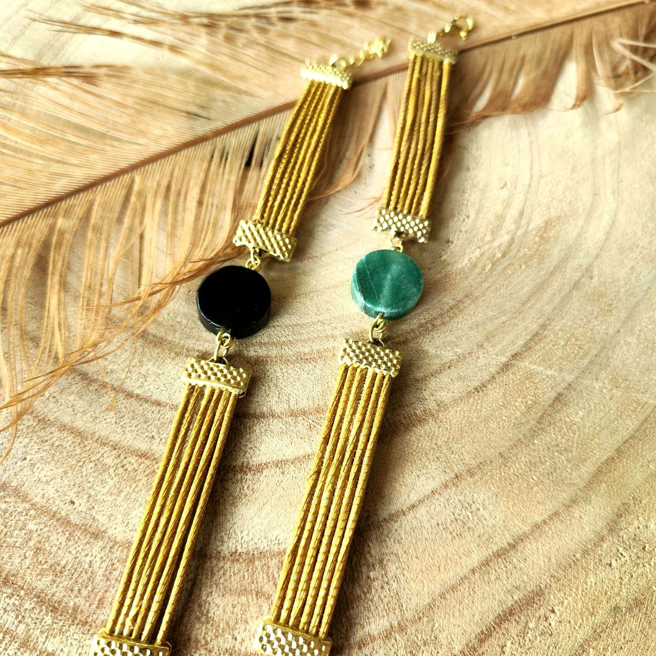 Pulsera Piedra Natural y Oro Vegetal .