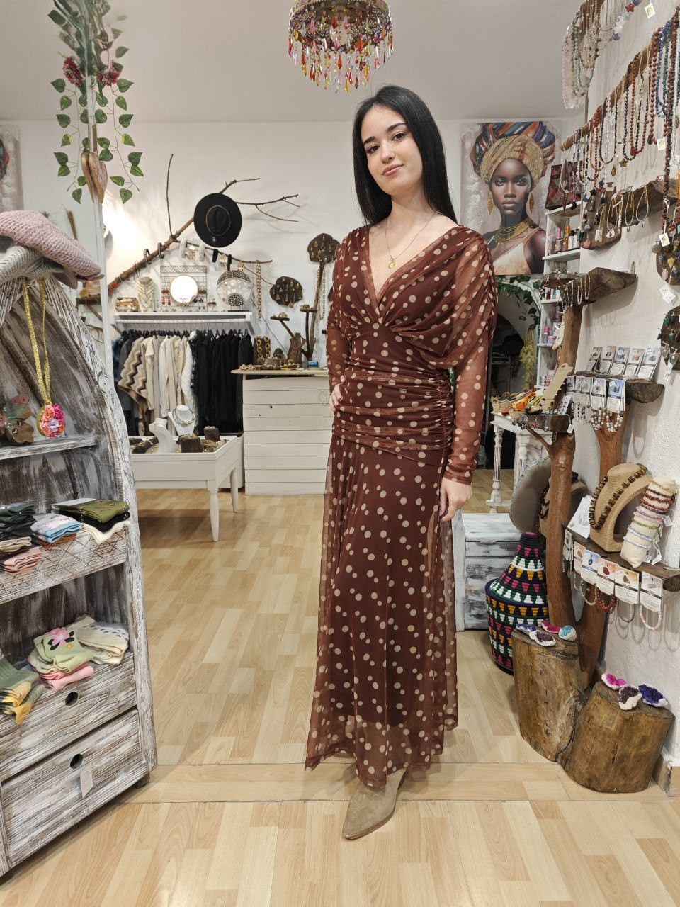 Sé el primero en valorar “Vestido Gasa Marrón Topitos”